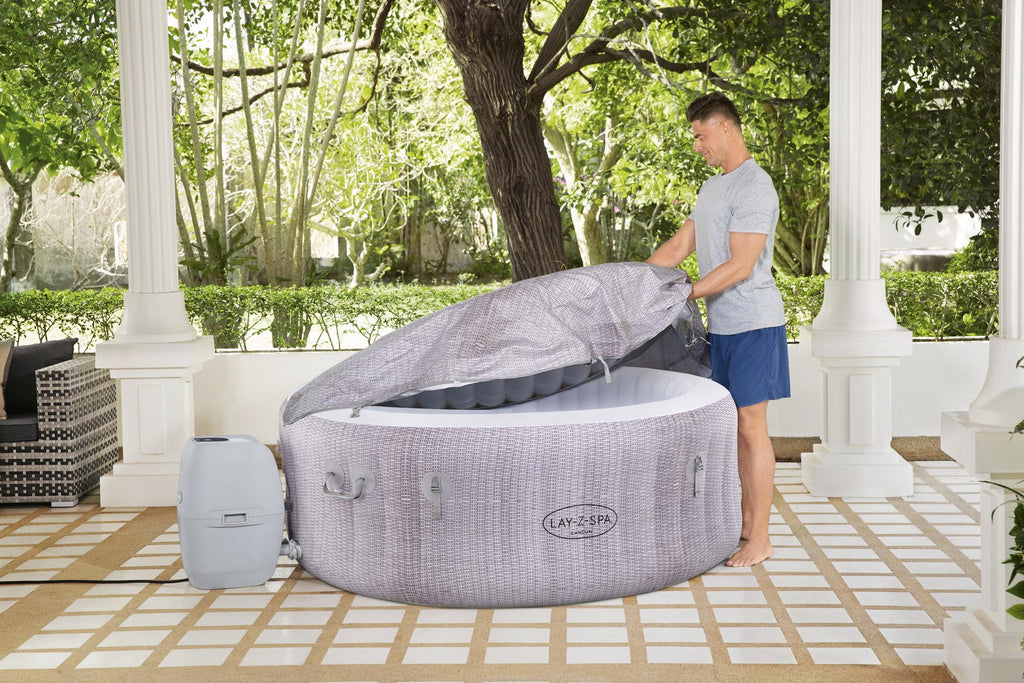 Geniet van ultieme ontspanning met de Lay-Z-Spa Cancun, een stijlvolle ronde spa geschikt voor 2 tot 4 personen. Met een watercapaciteit van 669 liter en 120 krachtige airjets biedt deze spa een heerlijke massage-ervaring zonder dat professionele installatie nodig is.
