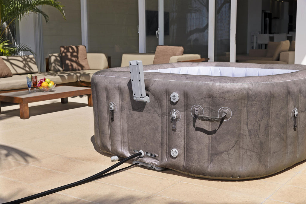 Geniet van ultieme ontspanning met de Lay-Z-Spa Rome Smart AirJet 6, perfect voor 4-6 personen. Met een royale inhoud van 840 liter en een stijlvol bruin marmer design past deze spa in elke tuin of terras.